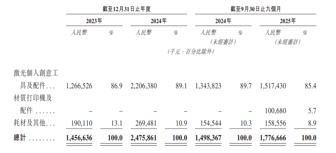 招股书披露显示,2023 年至 2024 年,xTool 营收由人平易近币 14。6 亿元增至 24。7 亿元,同比增加 70。0%。2025 年前三季度营收 17。77 亿元,同比增加 18。6%,此中“黑五网一”期间单日发卖额冲破1亿元。其规模取桌面3D打印范畴的龙头创想三维附近,创想三维正在2025年也向港交所递交了上市申请,腾讯正在多年前也投资了创想。《年营收超22亿,3D打印传教者创想三维提交IPO上市申请》截至 2025 年 9 月 30 日,xTool 具有 753 名全职手艺研发人员,占办公室员工的 56%,正在中国及海外累计具有发现专利 48 项、适用新型专利 244 项、设想专利 228 项、著做权 115 项及商标 431 个。其自从研发的同一软件平台 xTool Studio,集成细密光学、智能 CNC 节制取 AI 算法,搭载的 AI 引擎 AIMake 还能回忆用户偏好并持续优化机能,让设备越用越 “懂” 用户。